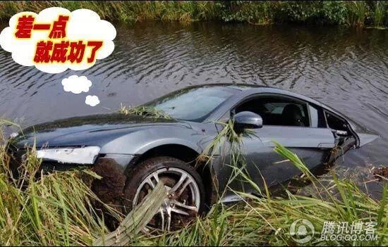 这位老兄显然是开R8最倒霉的一个了,不过他也差一点就创造了一个记录,这就是:开跑车“飞跃”小溪。